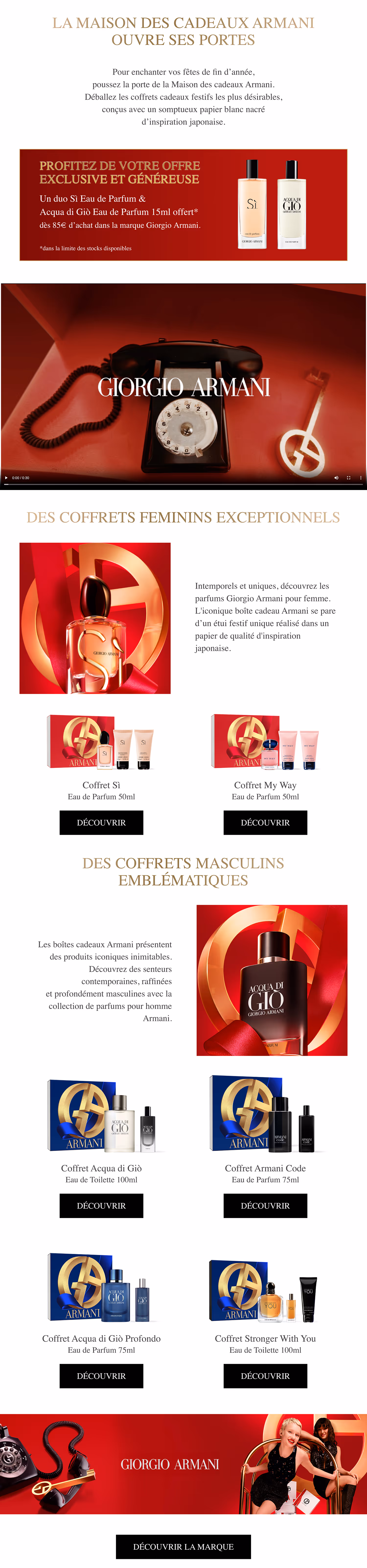 Intégration HTML, CSS et JS d’une page dédiée à la marque Giorgio Armani, en respectant fidèlement la maquette et les contraintes graphiques du projet.